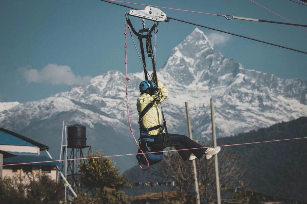 Đường zipline ở Nepal có tầm nhìn ra đỉnh núi Himalaya cao 8.000 m. Ảnh: High Ground Nepal